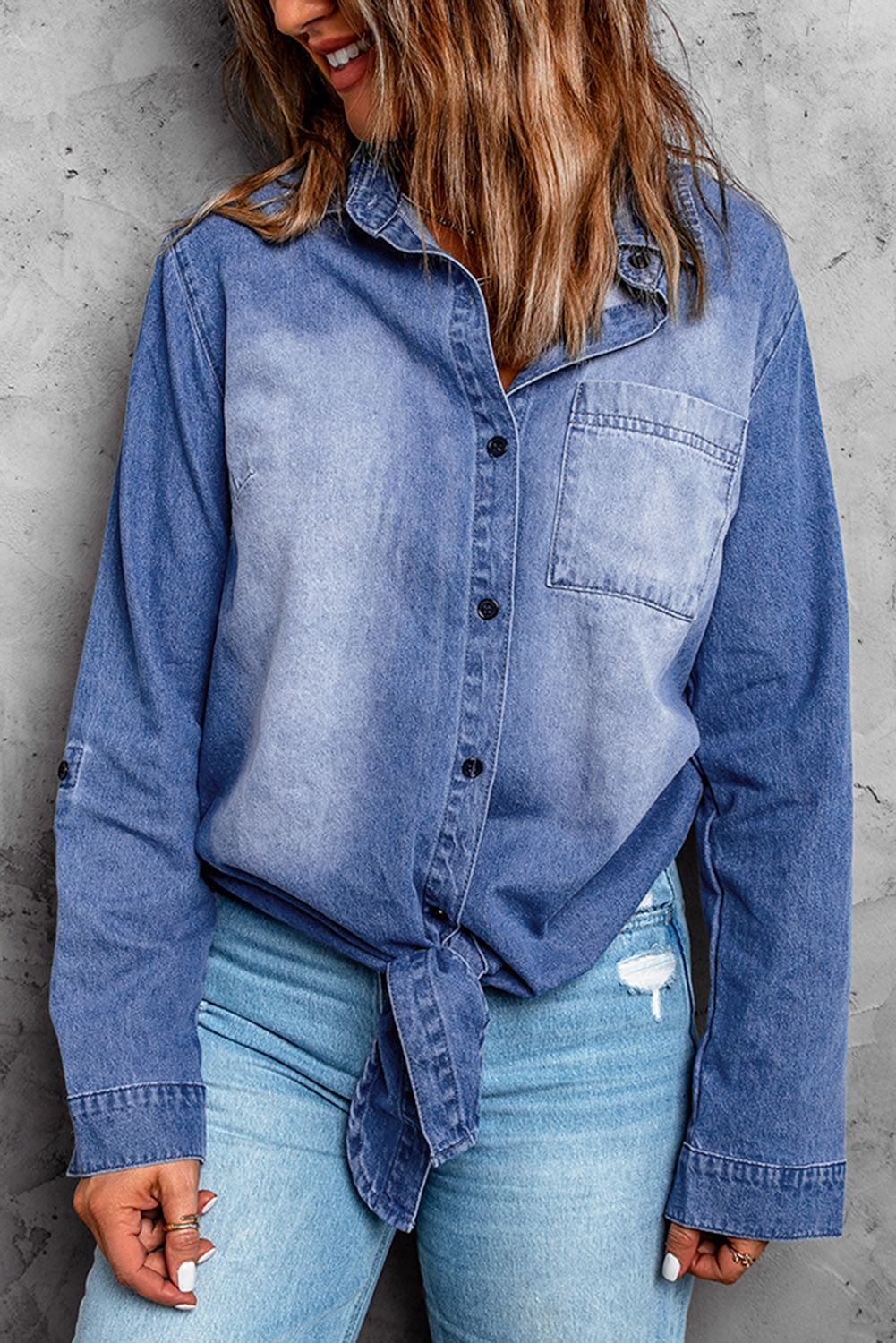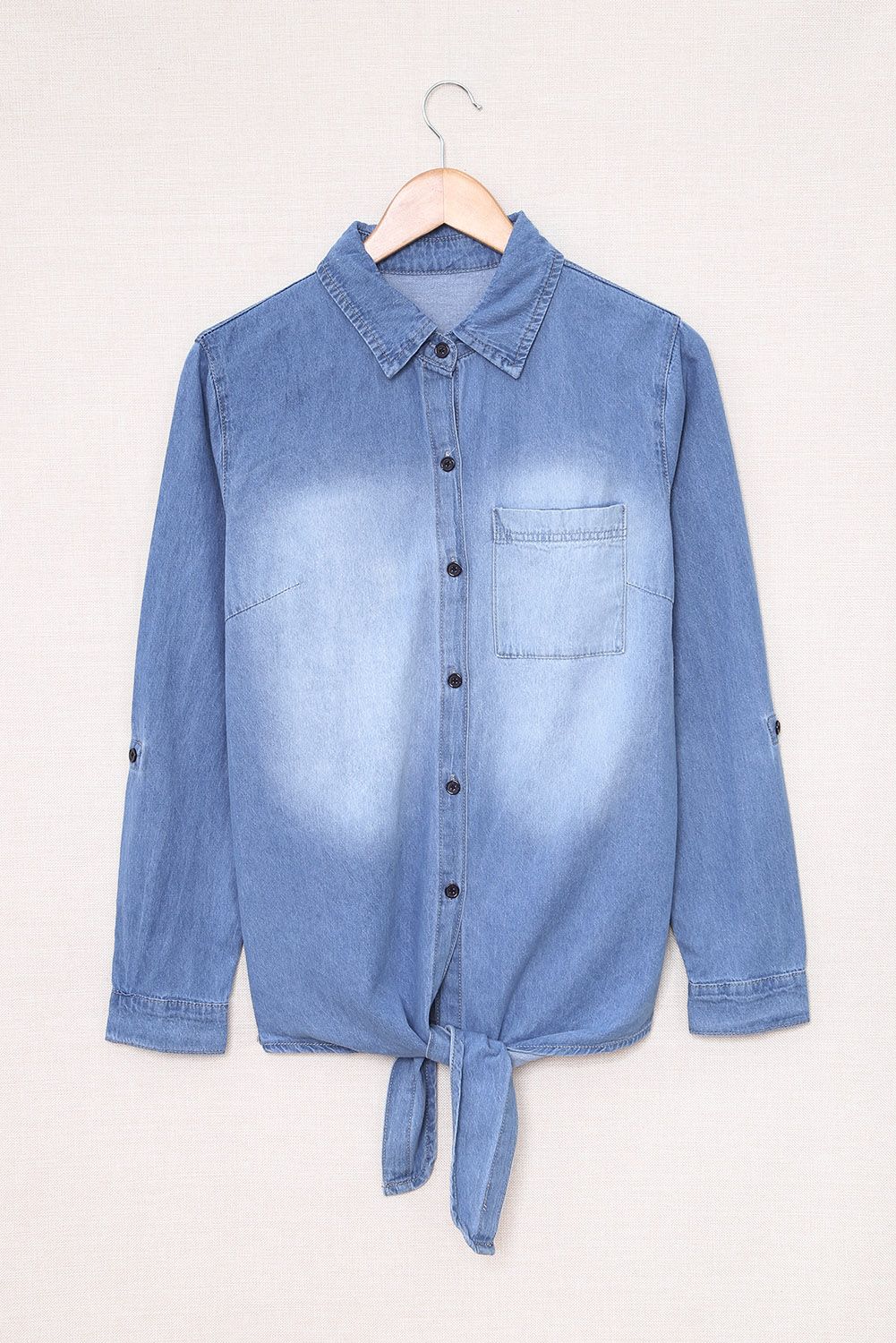 Blue Washed Pocketed Denim Shirt