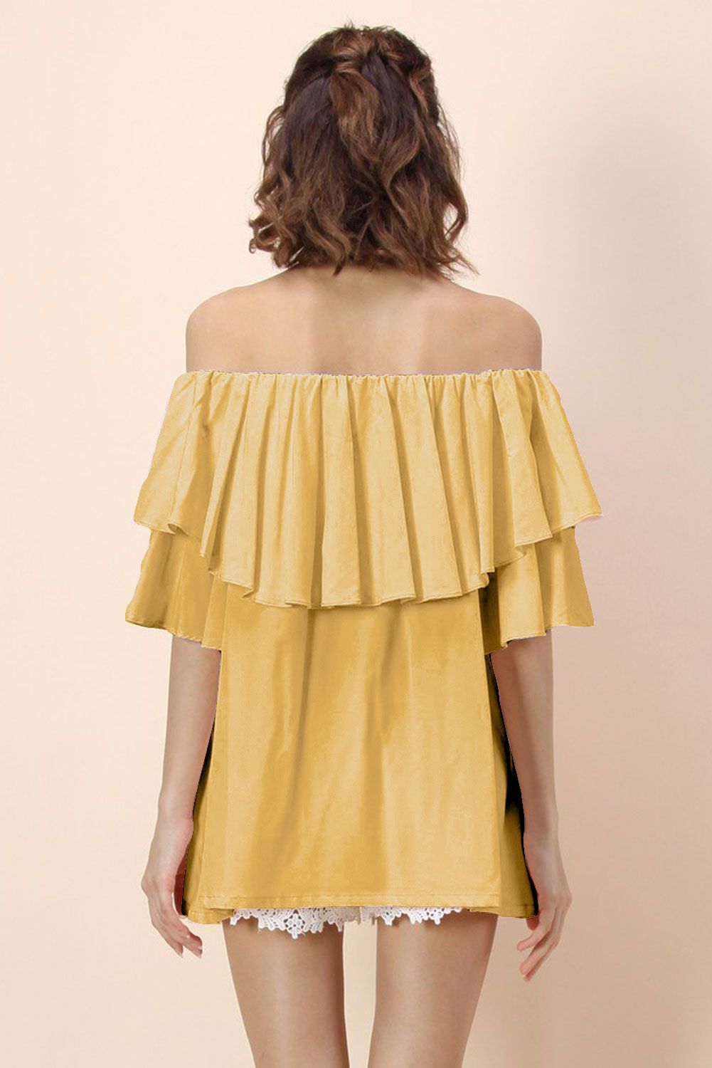 Frilling off-shoulder flap, flare sleeves