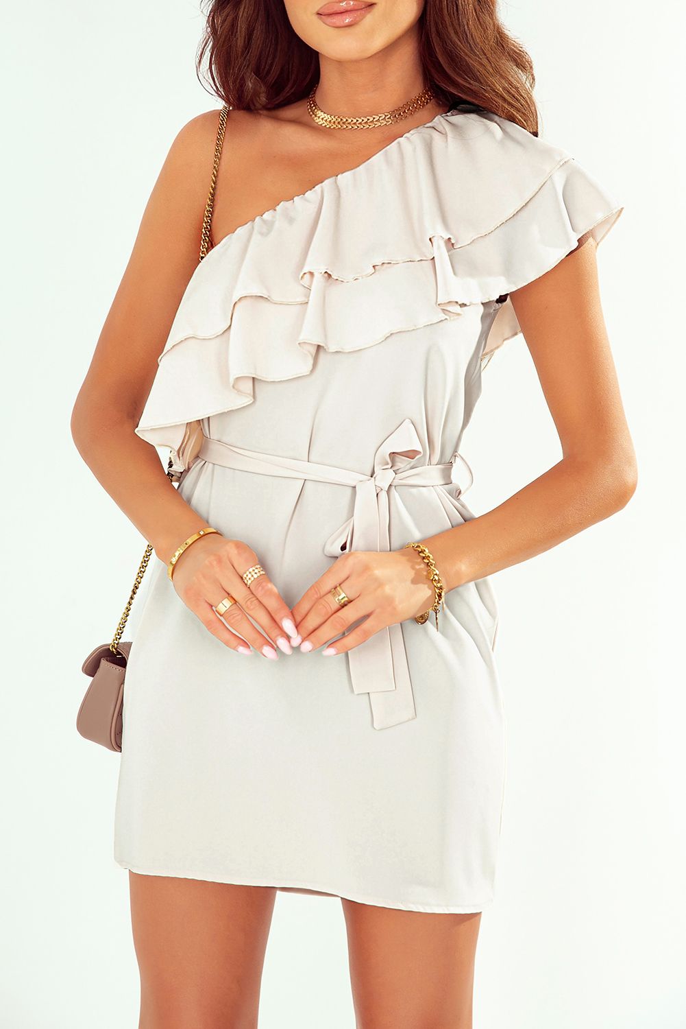 - This mini dress has a one-shoulder design which is sexy and alluring
