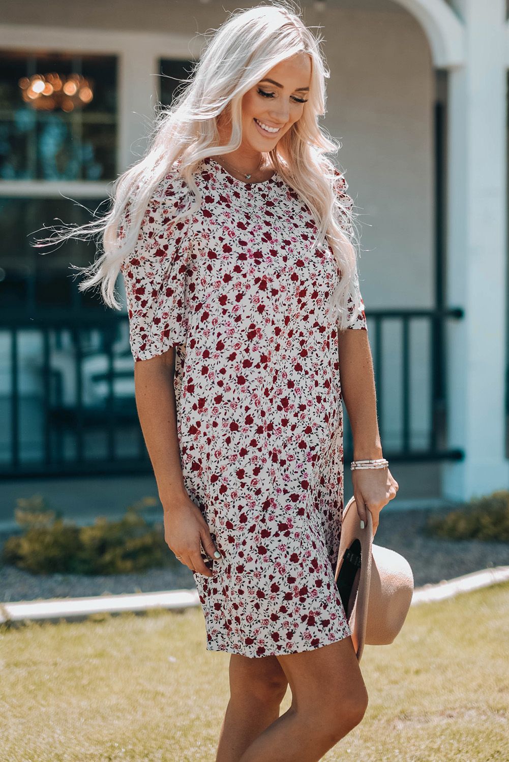 Puff Sleeve A-line Floral Print Mini Dress