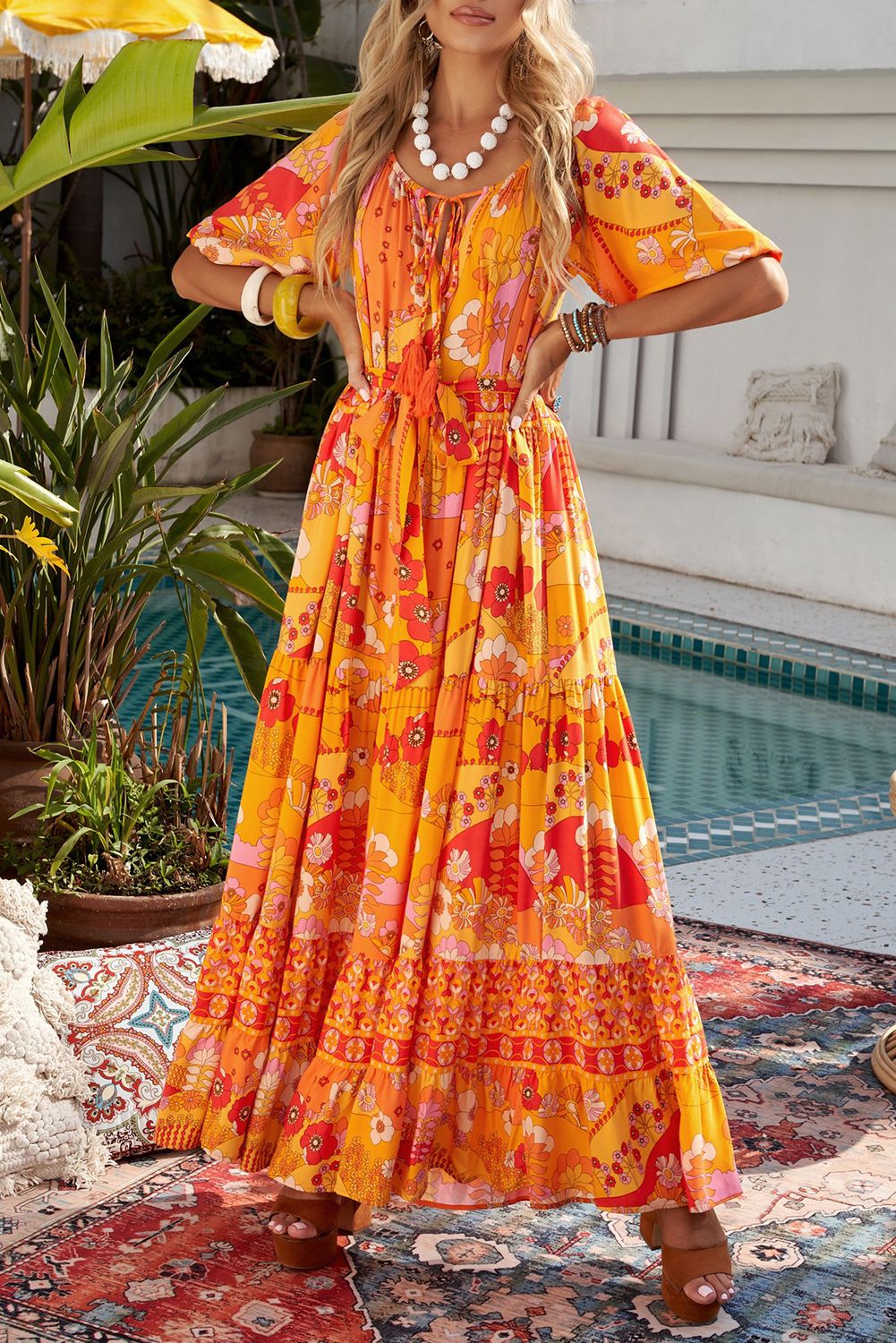 - Attend the wedding party on the beach in ourBoho Empire Waist Floral Long Dress
