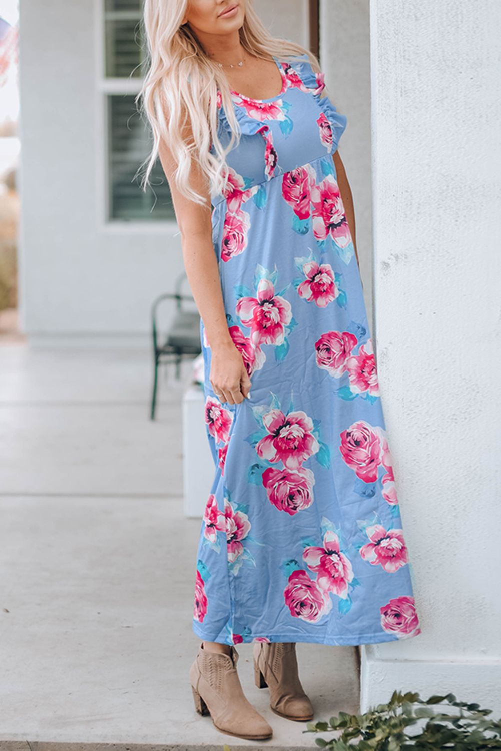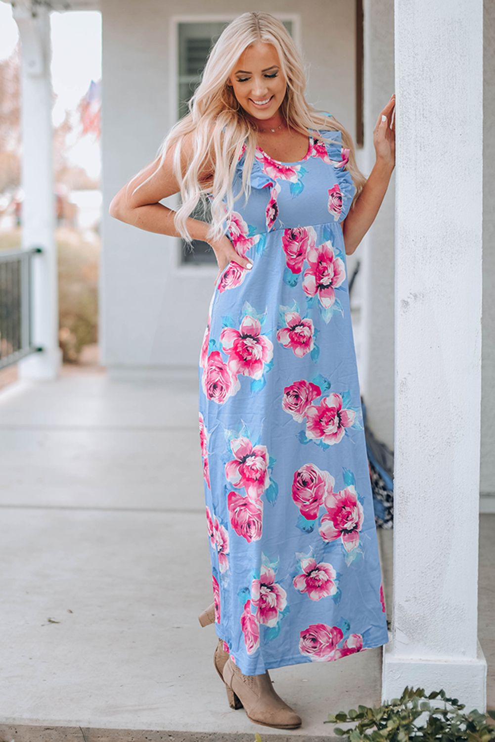 Ruffle Sleeveless High Waist Floral Maxi Dress